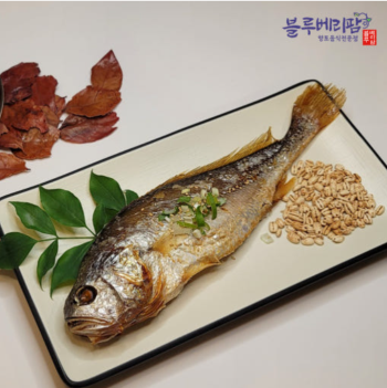 직접 농사지은 블루베리의 가을잎을따서 쪄서 말린잎으로 법성포 보리굴비를 쪄내어 진공포장해서 간편하게 굴비를 맛볼수있는 밀키트