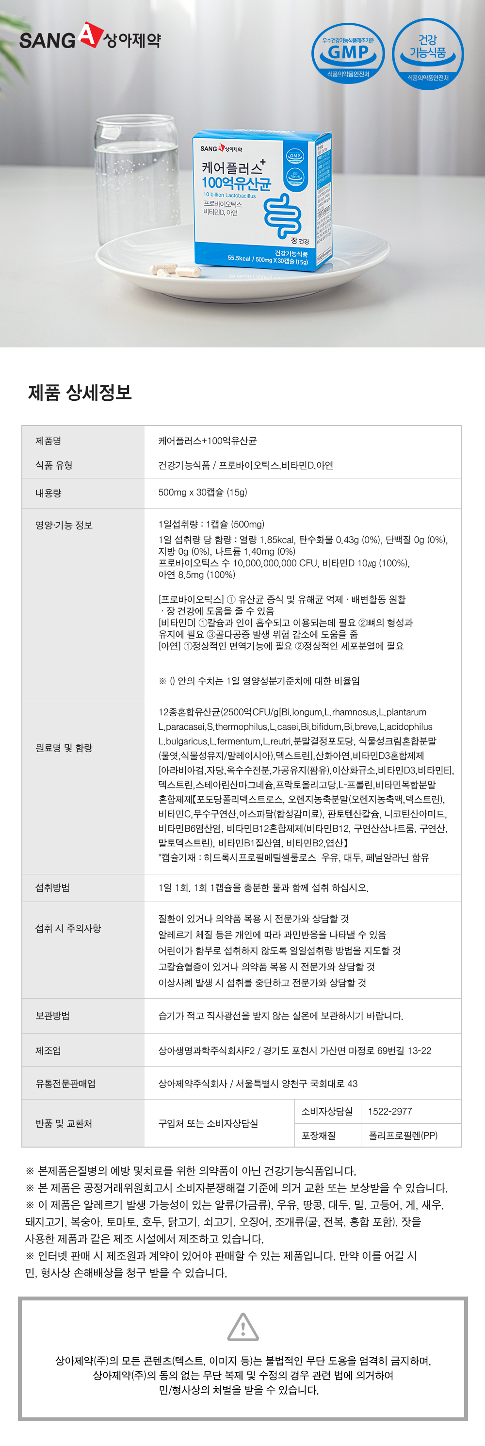 [상아제약] 케어플러스+ 100억 유산균 500mg*30캡슐